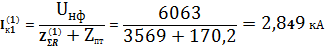 Найдем ток трехфазного металлического короткого замыкания на землю в
