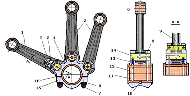 пальцем 2 со штифтом 3 и пальцем 14. В верхние головки шатунов запрессованы