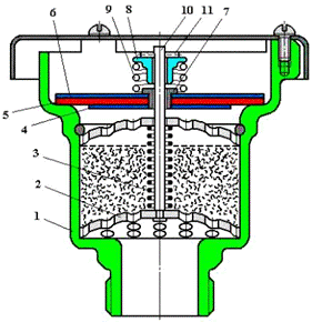 котором размещены собственно клапан 8 шарового типа, пружина 9 и регулировочный