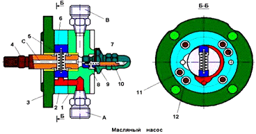 всасывается из картера через штуцер «А» и поступает в корте насоса, где