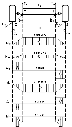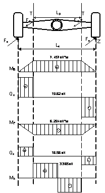 представлены эпюры отражающие действие нагрузок на изгиб при режиме торможения