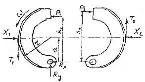 0,203 м - радиус колеса; Вт/2 - тормозное усилие на один тормозной механизм.