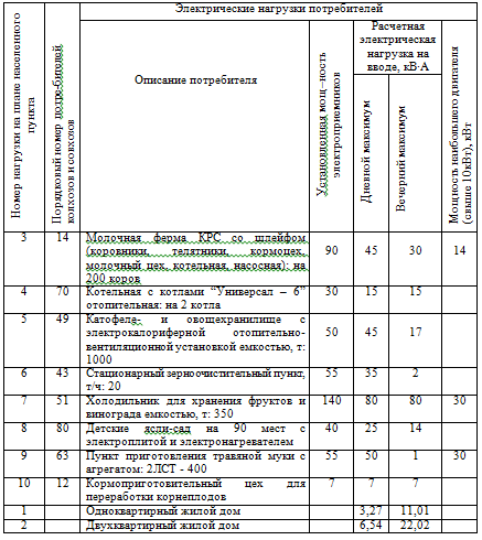 Мощность нагрузки сельских домов