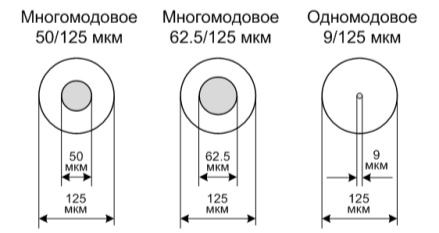 сердцевины у многомодовых волокон 50 или 62.5 мкм. Диаметр сердцевины у