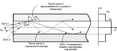 Рисунок 2 − Ход лучей в многомодовом оптическом волокне