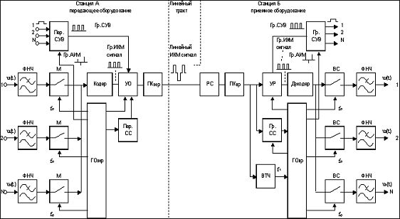 выходов модуляторов объединяются в групповой АИМ сигнал (Гр. АИМ). Управляют