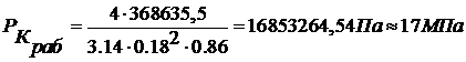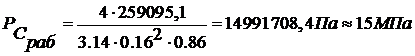 расчетное давление рабочей жидкости, МПа;