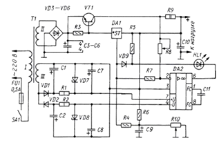 стабилизатора DA1 по току и препятствует её чрезмерному нагреву и выходу