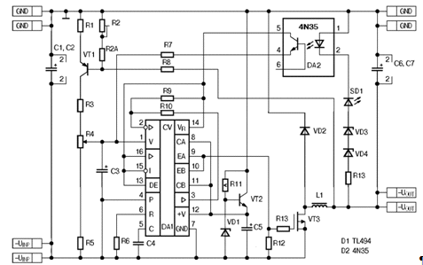 светодиод SD1, индицирующий о превышении выходного напряжения, и оптрон DА2.