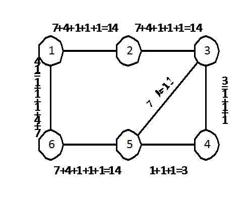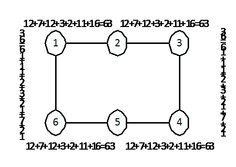 узлами 1-2,2-3,3-4,4-5,5-6,6-1. В остальных случаях считаем трафик равным нулю.