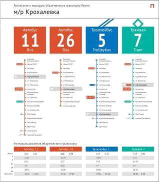 введен свой цветовой код. К примеру, для метро это красный, для трамвая -