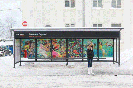 расписания общественного транспорта, рекламу на фасады зданий и прочие