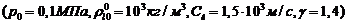 воды- Cl=1500 м/с, l00=1000 кг/м3; для воздуха - g00=1.3 кг/м3, сg=1006