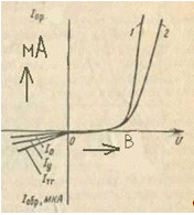 показаны на рис.1.2 (кривая 1-ВАХ перехода, кривая 2 - ВАХ диода). Как