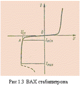 ВАХ стабилитрона является участок в области электрического пробоя. ВАХ