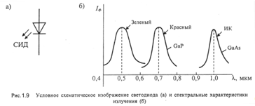 светодиода, а на рис. 1.9 б приведены спектральные характеристики