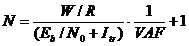 активных пользователей) при принятых значениях Eb/N0 и запаса по