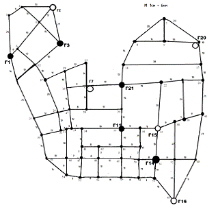 расчет кратчайших расстояний между грузопунктами с применением этой модели;