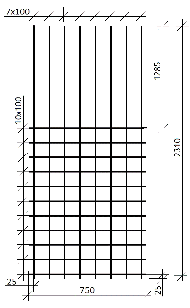 В подколонник устанавливается 9 сеток С-10 с шагом 100 мм. Масса девяти