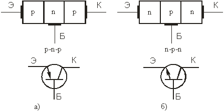 області з різною електропровідністю. У транзистора типу n-р-n середня область