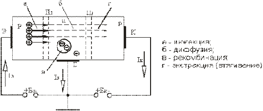 в базу дірки переміщуються в ній за допомогою дифузії. При цьому дірки