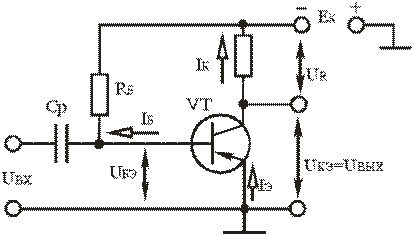 створюючи колекторний струм Ік. Колекторний струм по колу: + Ек,
