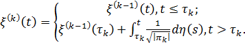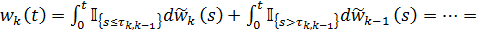 побудовану систему вінерівських процесів із склеюванням (див. теорема 1)