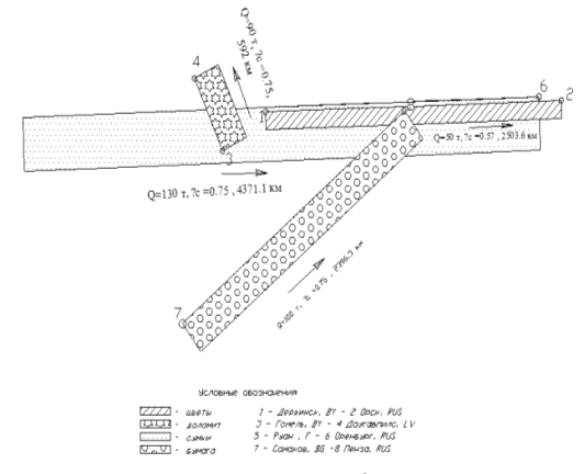 Маршруты движения между корреспондирующими пунктами и затраты времени