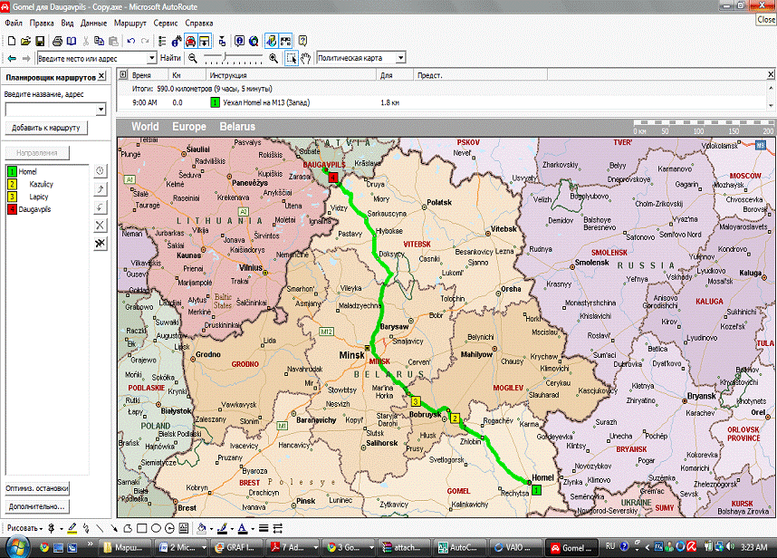 находятся с помощью программы AutoRouteExpress. Для этого строим не менее двух
