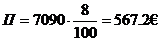 = 7090 + 567.2 + 113.44 = 7770.6 €