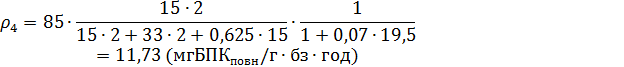 Концентрація БПКпов в суміші побутових і промислових стічних