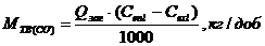 Тоді загальна добова маса затриманих на гратах забруднень: