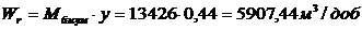 Добовий об’єм газу при зброджуванні стабілізованої суміші, м3/доб: