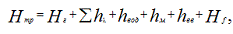 учетом потери напора в сети на трение и местные сопротивления, геодезической