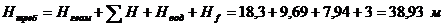 от ввода водопровода в здание с максимальным значением свободного напора - Hf
