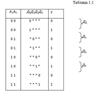 "0 1", "1 0", "1", "Х" - неопределенное