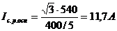 4) Расчетный ток в реле (для треугольника с