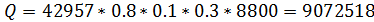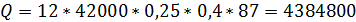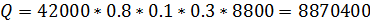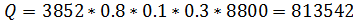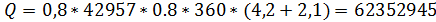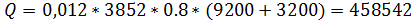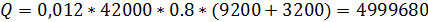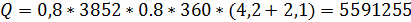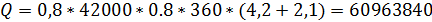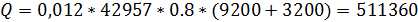 пересчете на рабочую массу топлива кДж/м3;