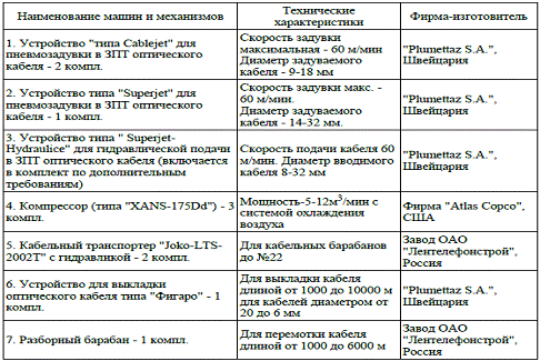 устройства перемотки кабелей. В таблице 1 указан перечень машин и механизмов