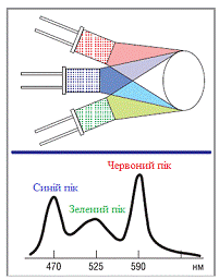 світлодіодами. Перший полягає в змішуванні червоного, зеленого і синього