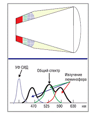 що дають біле світло, дуже складна. Існують два шляхи створення білого світла