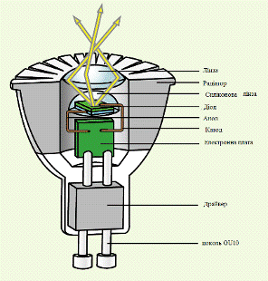 розжарювання. Головне - отримано білий світ від енергії світлодіода.