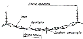 Рисунок 2 - Волны вибрации на проводе в пролете