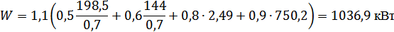 учитывающие одновременность работы потребителей (соответственно равные 0,5,