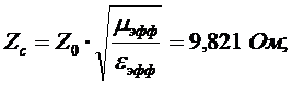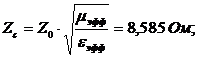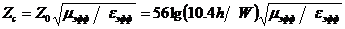 сопротивление микрополосковой линии на ферритовой подложке Zc по формуле