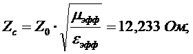 сначала определим эффективную ширину линии сопротивлением Zc,