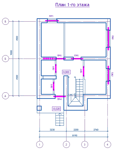 Фасад 1-4 ориентирован на юг, фасад 4-1