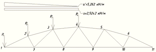 )Узловой болт, воспринимающий равнодействующую усилий в раскосах,