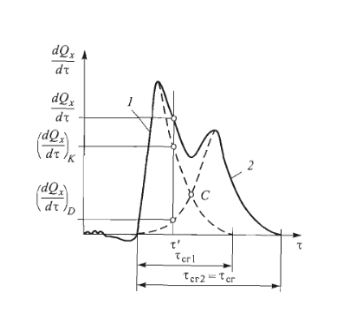 снижению скорости тепловыделения после достижения первого максимума. В этот