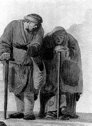 И. А. Ерменев. Нищие. Рисунок. Перо, акварель.